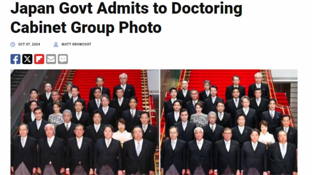 内閣の集合写真画像データの加工の話題 海外でも報道