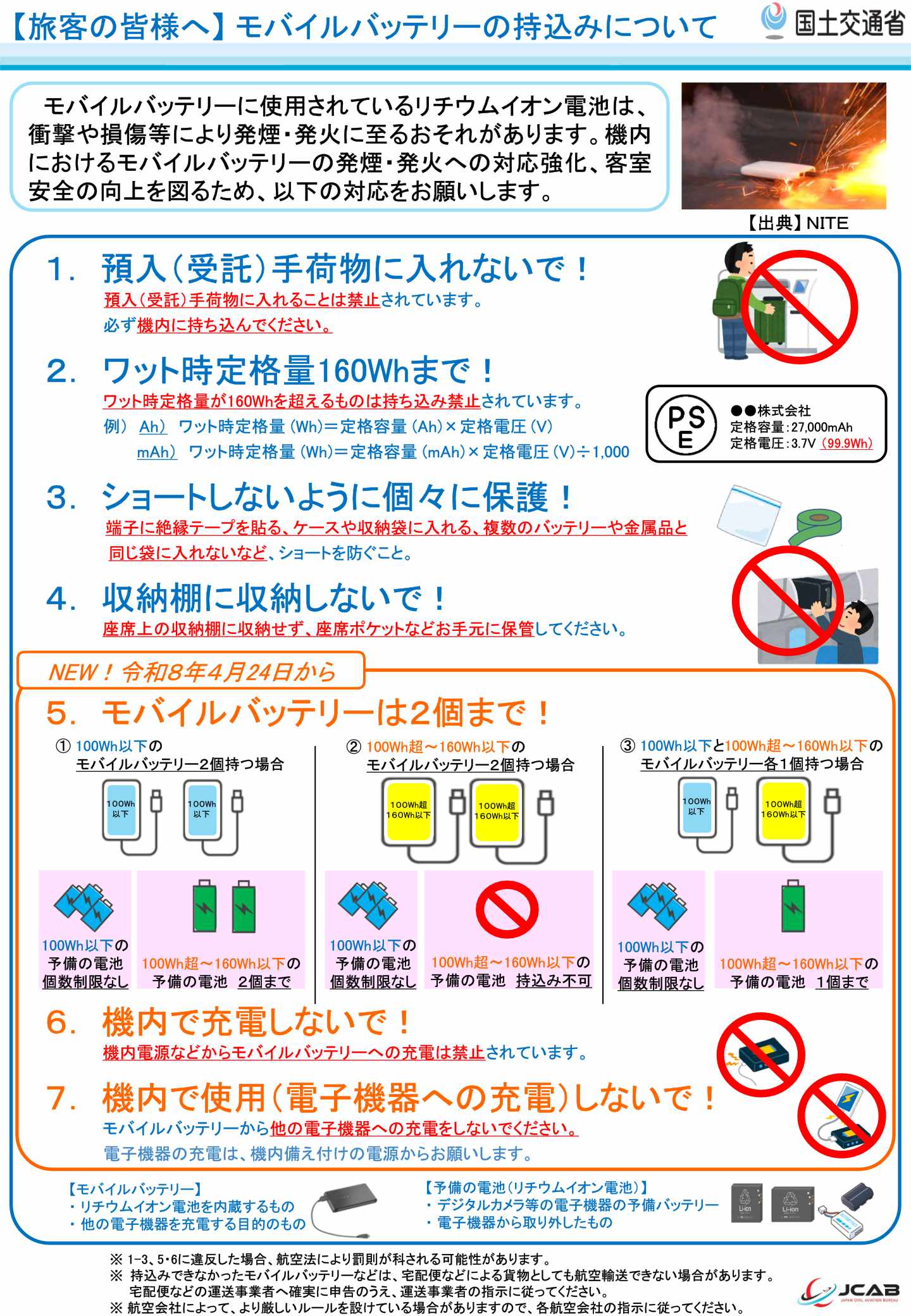 - 100Wh~160Whのモバイルバッテリー・予備電池の持ち込みは合計2個まで