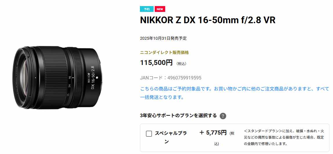 一般店舗での予約も開始されており、初値が確定しました。NIKKOR Z DX 16-50mm f/2.8 VRの初値は10万3950円、NIKKOR Z DX MC 35mm f/1.7の初値は5万8410円となっています。