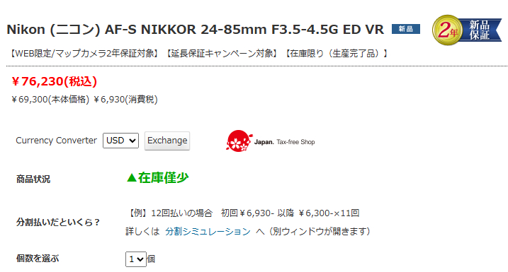 AF-S NIKKOR 24-85mm F3.5-4.5G ED VR 生産完了