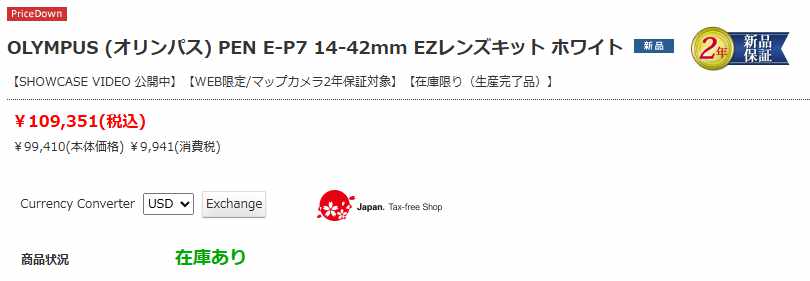 マップカメラの製品サイトからOLYMPUS (オリンパス) PEN E-P7 14-42mm EZレンズキット ホワイトの生産が完了していることが明らかになりました。上記の画像タップで拡大します。
