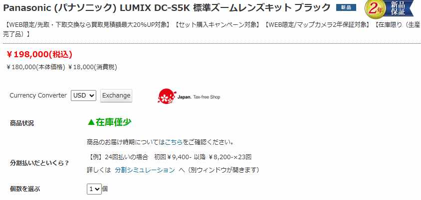 上記のスクリーンショットは標準ズームレンズキットですが、カメラ単体も生産が完了しており、もう生産はしておらず、在庫のみということになりそうです。すでに後継機が登場していますので、生産完了による影響は少ないと思われます。