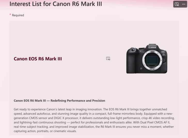 カメラの小売店が、またもEOS R6 Mark IIIの製品ページを誤掲載したのではないかとCanonRumorsが伝えています。