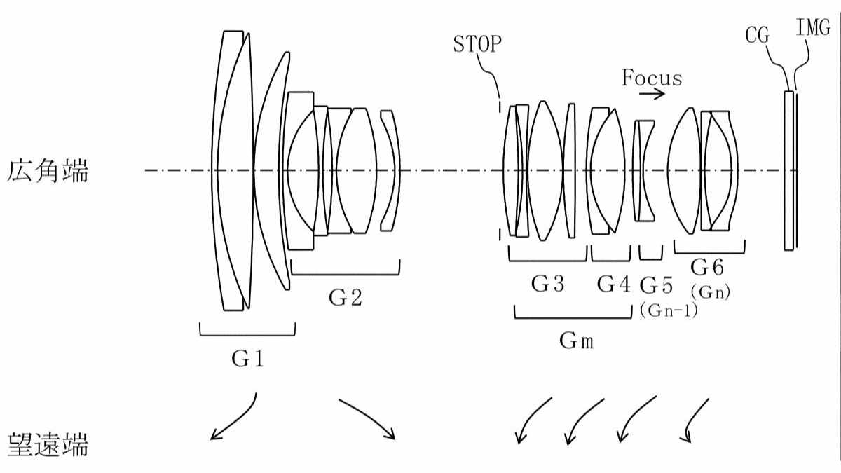 特許を読むと前玉側や後玉側のいずれかが移動し、群間距離も可変という記述があるので、鏡筒の長さが変わる一般的な繰り出しズームに該当するようです。