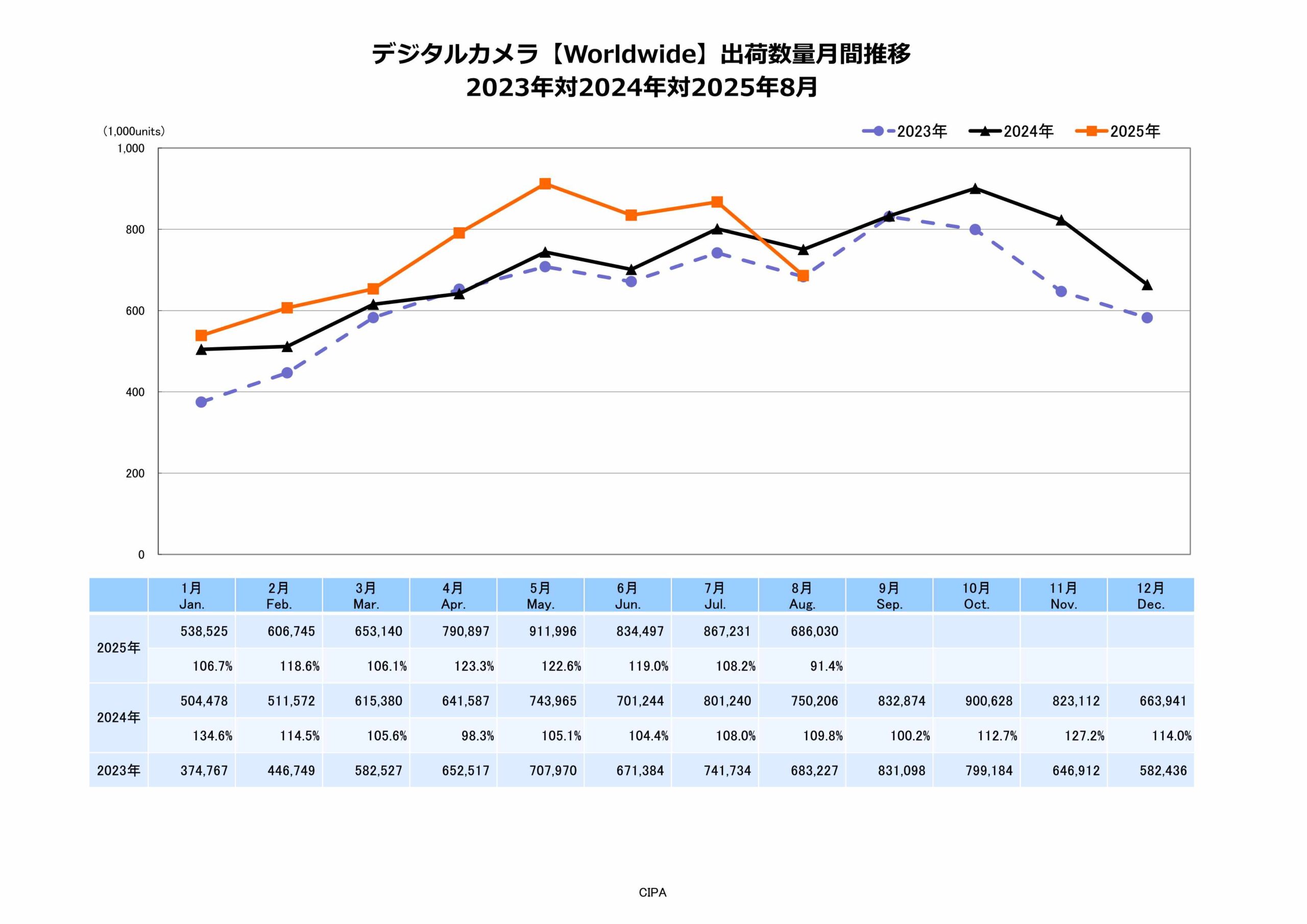 好調から一転、CIPA統計 2025年8月のデジカメ出荷数量が激減の理由とは